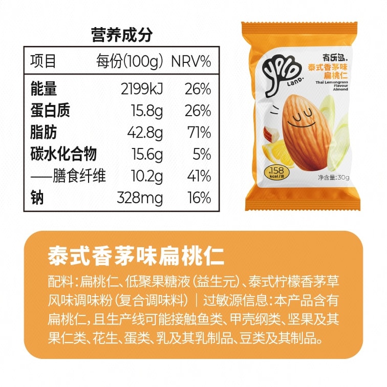 【中国直邮】 有乐岛 泰式香茅味扁桃仁 30克
