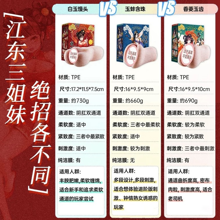 谜姬 江东三姐妹白玉馒头 国潮名器处女膜男用倒膜飞机杯