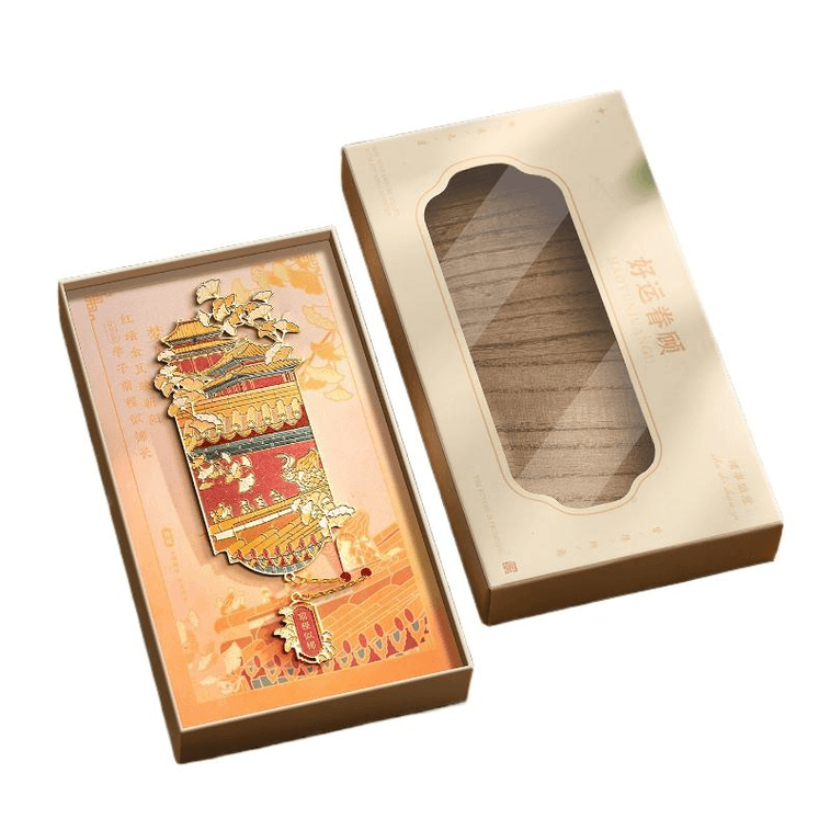 【中国直邮】 雄狮文具 故宫文创书签古典中国风金属书签高档精致礼盒 前程似锦 148*78mm