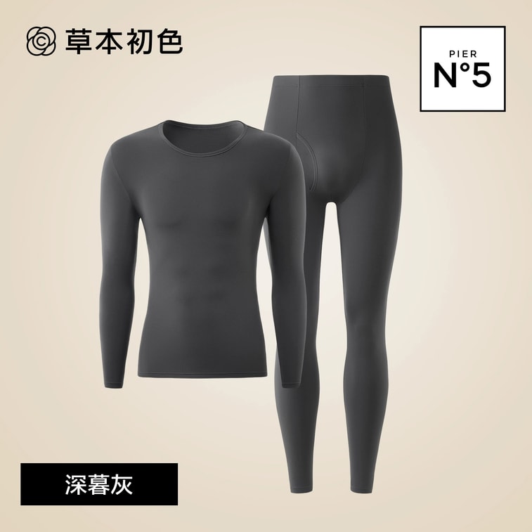 【中国直邮】 草本初色 保暖内衣套装加绒加厚打底衫秋冬男款 XL 一套装 灰色