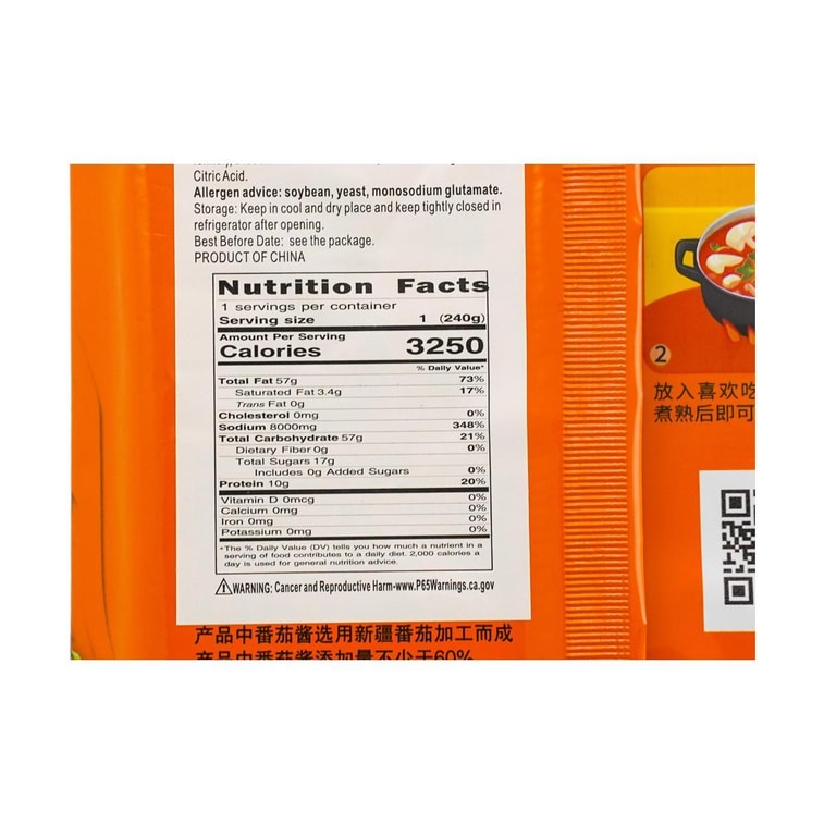 重庆桥头 浓香番茄火锅底料 240g【不辣鲜美】
