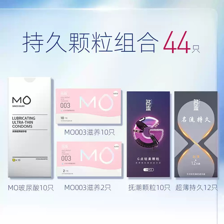 【中国直邮】 名流 MO玻尿酸避孕套安全套 超薄亲肤 MO玻尿酸10只+滋养10只+抚潮颗粒 10只+物理延时12只+MO滋养2只