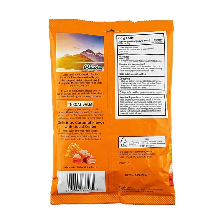 瑞士RICOLA利口乐 润喉糖 保护嗓子 34粒 #蜜糖焦糖味 舒缓喉咙不适