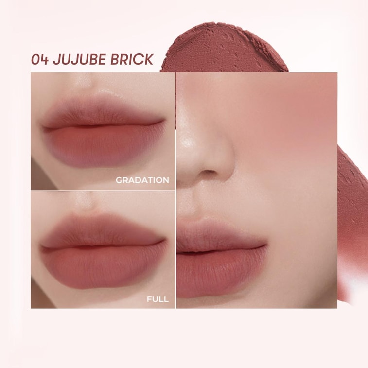 韩国COLORGRAM 果酱柔雾唇霜 唇颊两用口红 空气丝绒哑光唇釉 3.5g #04 JUJUBE BRICK 棕调珊瑚玫瑰色