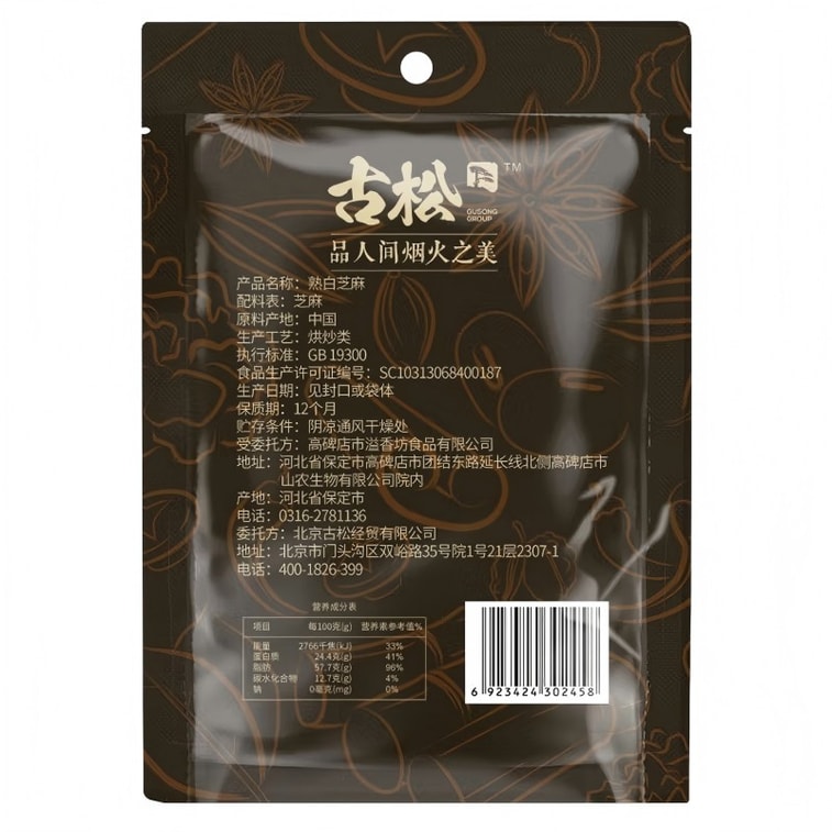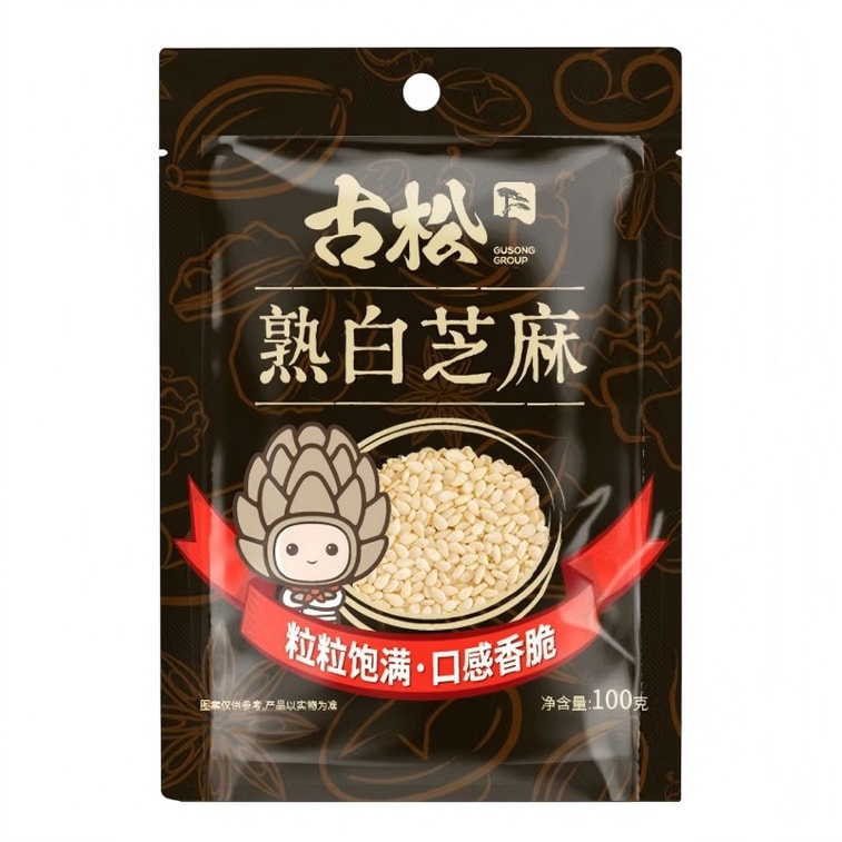 【中国直邮】 古松熟白芝麻无添加 低温炒制干吃即食粉烘焙免洗五谷杂粮凉拌烘焙炒熟芝麻酱原料黑芝麻伴侣100g