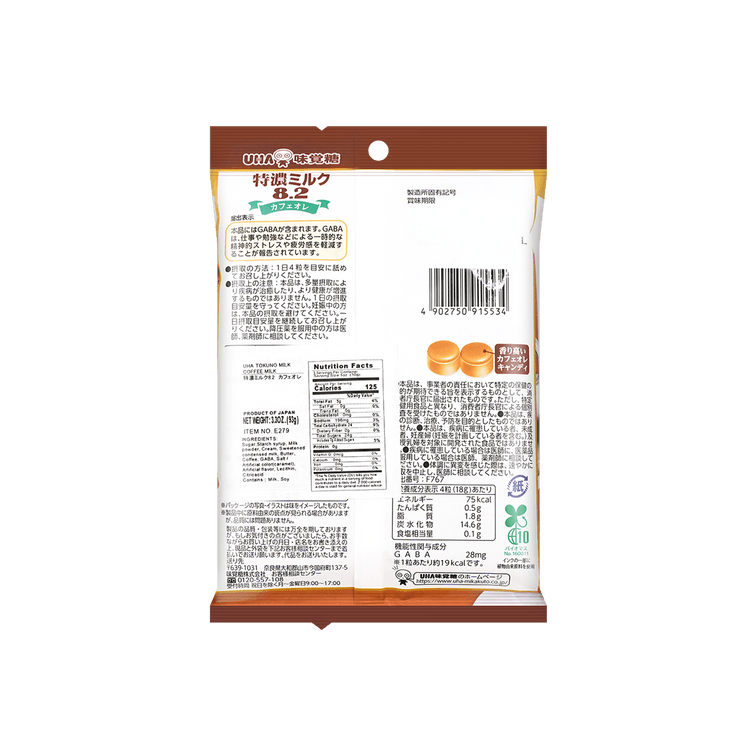 日本UHA悠哈味觉糖 8.2特浓牛奶糖 咖啡牛奶味 93g【含GABA成分 减轻疲劳感】