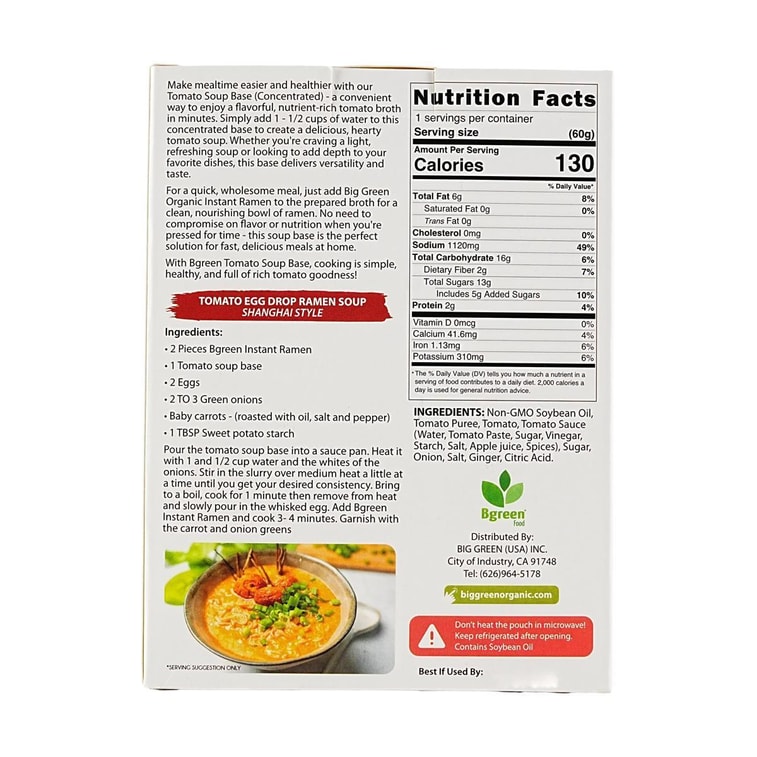 BIG GREEN 浓缩番茄汤 拉面汤底 6袋装 360g【可用于煮面煮汤煮麻辣烫火锅等】
