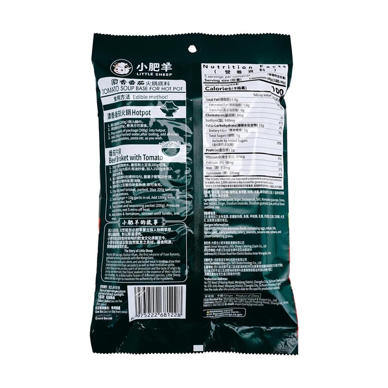 小肥羊 浓香番茄火锅底料 3-5人份 200g【每袋约含7个新鲜番茄】【香浓不辣火锅料】