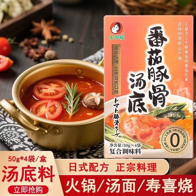 日本 大多福 番茄豚骨火锅汤底 日式火锅底料番茄牛腩火锅汤底底料 50g*4袋 【火锅/汤面/寿喜烧】【鲜甜微酸 自然浓郁】