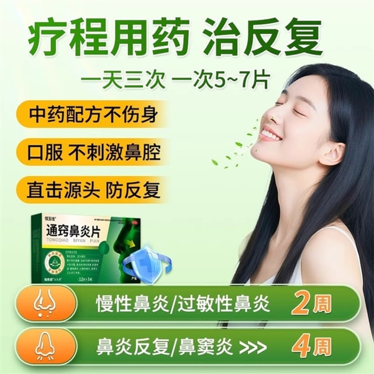 【中国直邮】 恒玉佳 通窍鼻炎片 鼻炎专用鼻窦炎过敏性鼻塞药成人非颗粒特效药 12片/盒