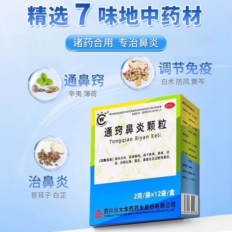 【中国直邮】 华西牌 通窍鼻炎颗粒 儿童根鼻窦炎治疗过敏性鼻炎药专用特效药12袋/盒