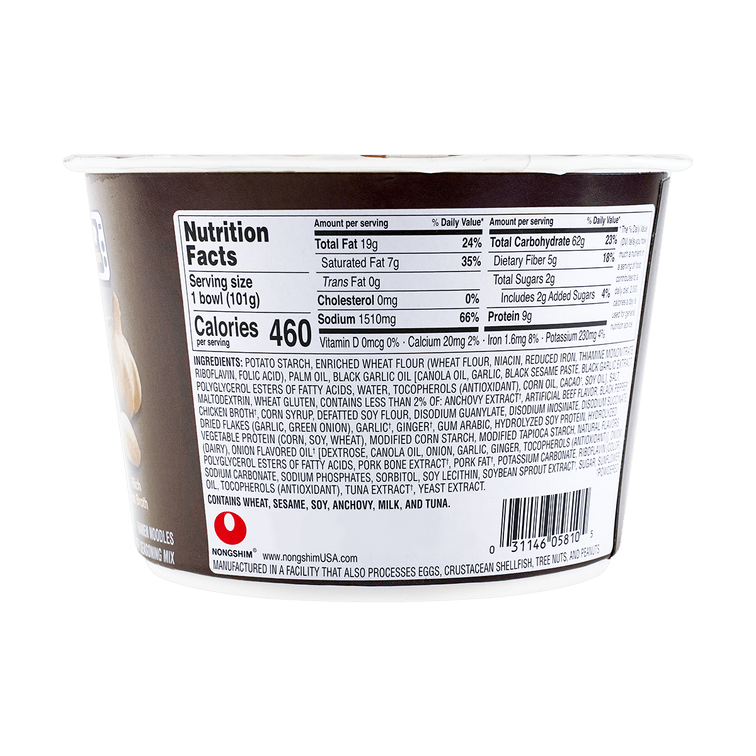 美国版NONGSHIM农心 拉面 日式黑蒜油豚骨浓汤面 碗装 101g【韩国顶流神仙泡面】