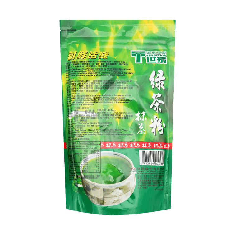 台湾世家 新鲜活绿 绿茶粉 抹茶粉 250g【0糖0添加】【冲饮烘焙甜品用】