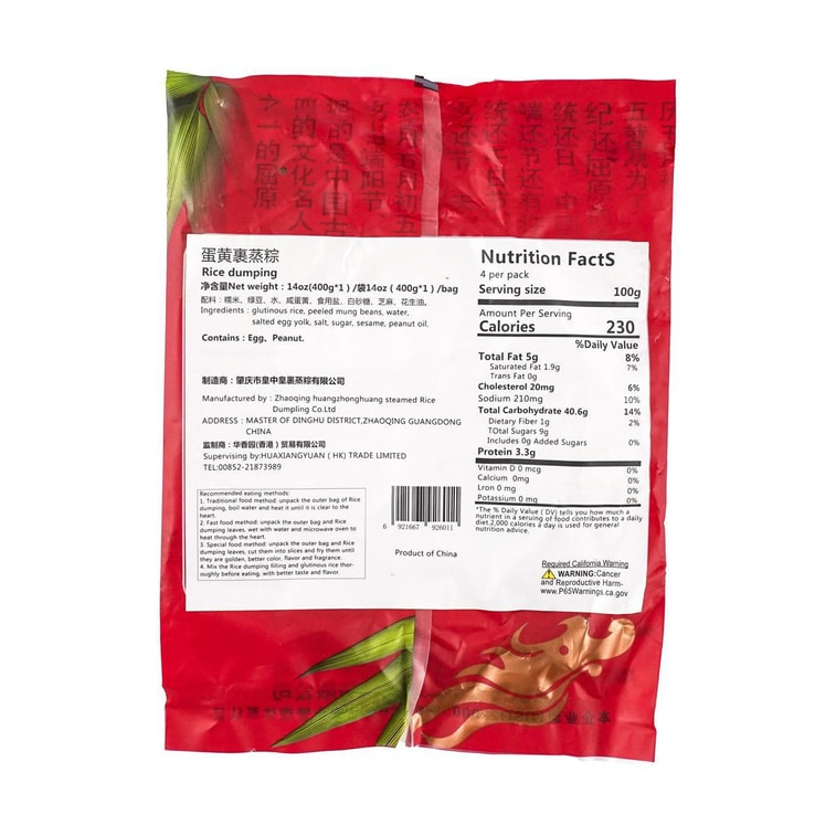 皇中皇 传统蛋黄裹蒸粽 400g【广东老字号】【端午节粽子】 | 亚米