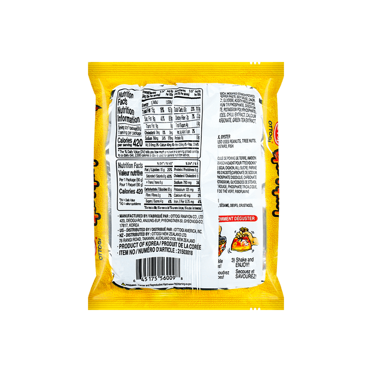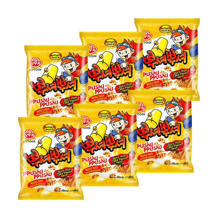 【分享装】韩国OTTOGI / OTOKI不倒翁 PPUSHU PPUSHU干脆面 辣炒年糕味 90g*6【TWICE娜琏推荐】