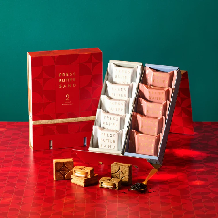 【日本直邮】 日本 press butter sand 期间限定 超人气网红饼干 两种口味黄油夹心饼干组合装 原味x奶茶 2盒装