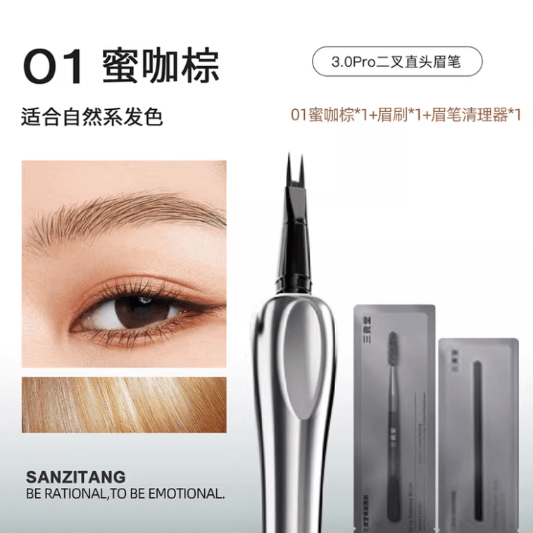 【中国直邮】 三资堂 二叉水眉笔 01 蜜咖棕 发色浅色系推荐 持久防水不脱色 一笔勾勒 立体野生眉 0.8g 1支