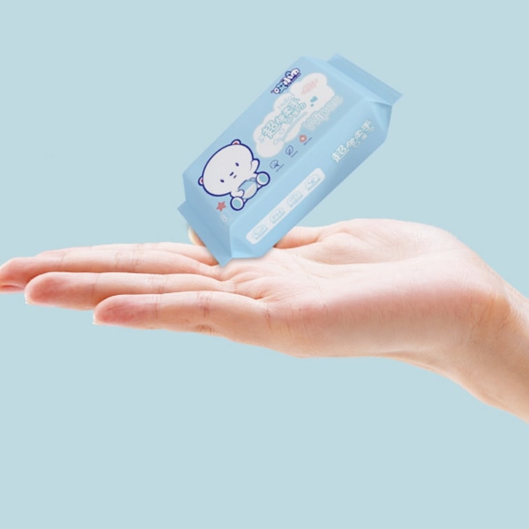 哎小巾 超迷你湿巾便携小包装抽取手口清洁湿纸巾 8片x8包装 蓝色小熊装 纯水配方保湿滋润 婴儿可用 无荧光剂 单独包装 随身携带方便