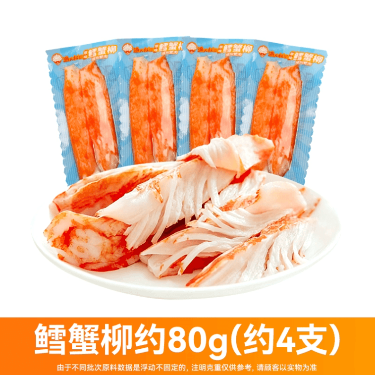 【中国直邮】 渔大叔 鳕蟹柳早餐轻食海味零食80g*1袋4支(8根)