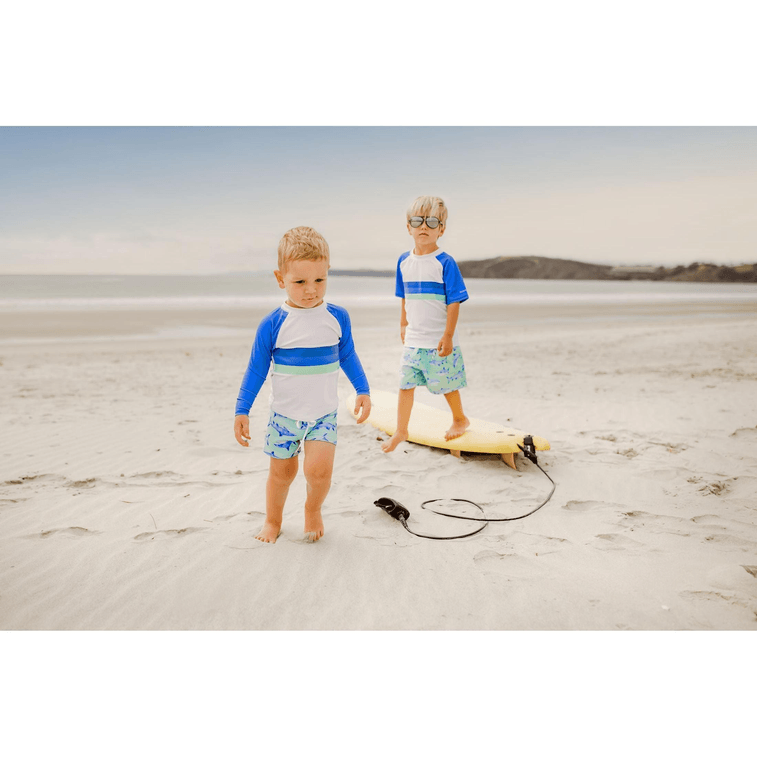 美国 MOM LOVES ME 快拍石游泳鲨鱼条纹短袖防晒上衣 3岁