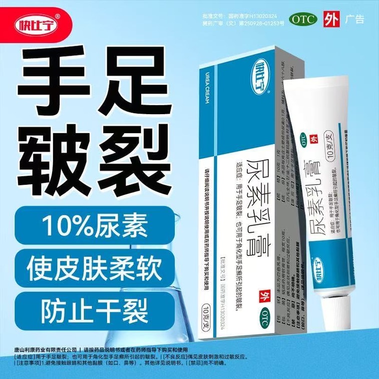 【中国直邮】 快比宁 尿素乳膏 脚后跟干裂修复霜 起硬皮足跟开裂专治 脚裂膏角化型湿疹药 10g/盒