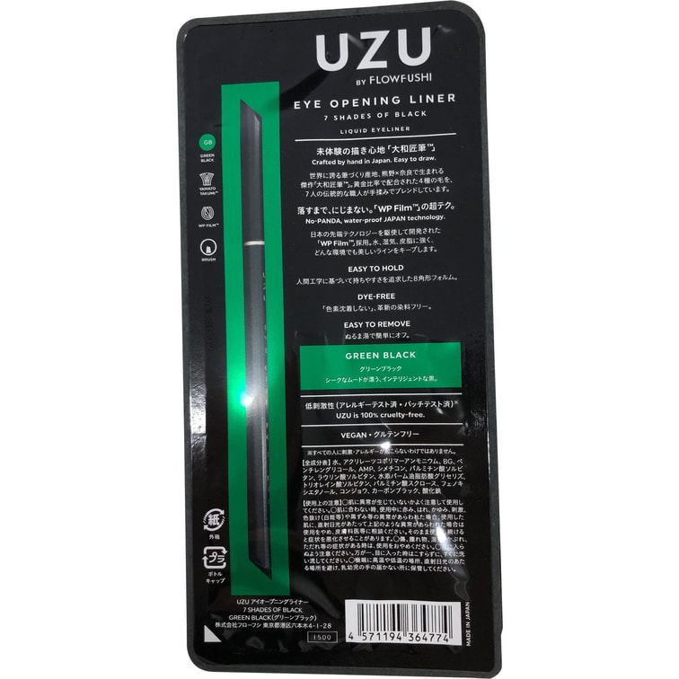 【日本最具人气! COSME大赏】【日本直邮】日本熊野职人 UZU by Flowfushi 持妆防水彩色不易晕染 黑色系列眼线液笔 绿调黑 0.55ml