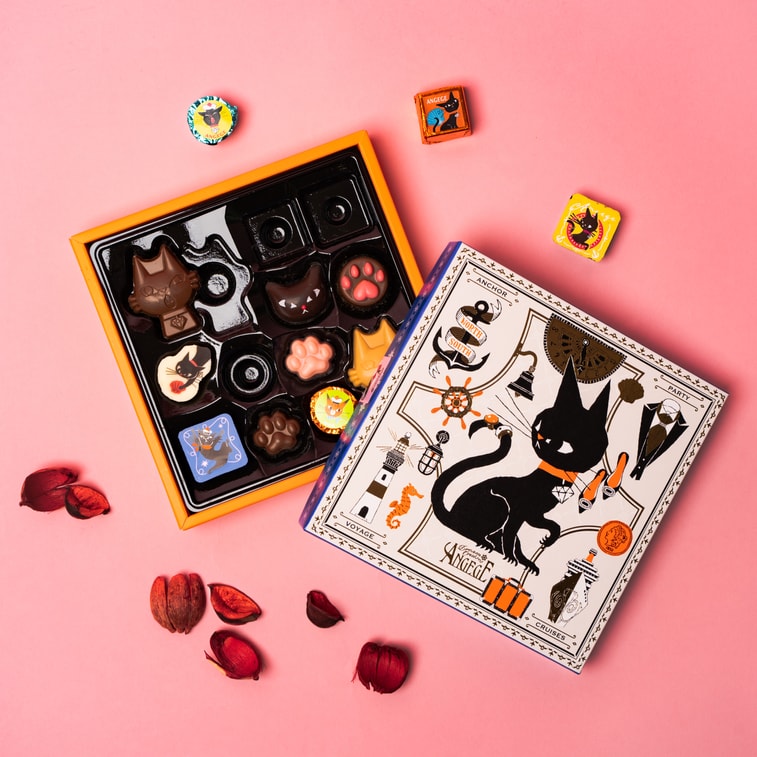 GONCHAROFF与插画师宫崎合作的猫咪系列巧克力礼盒,顽皮的黑色猫咪精心打扮后在享受游轮PARTY