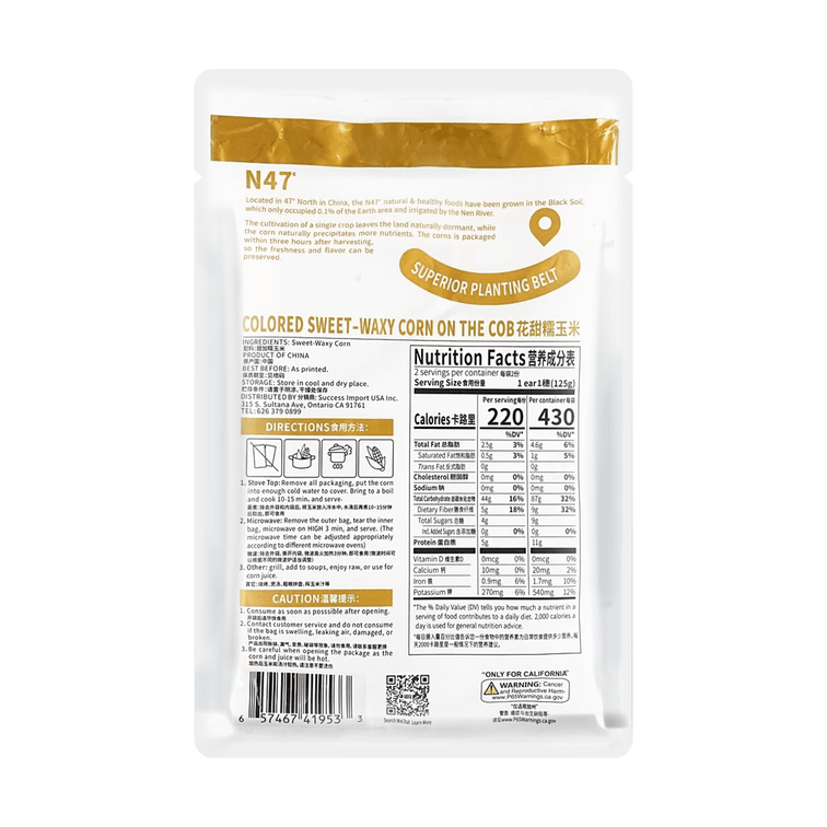北纬47° 花甜糯玉米 2根装 400g*3份【超值装】【高纤低卡粗粮早餐】 【新老包装随机发货】