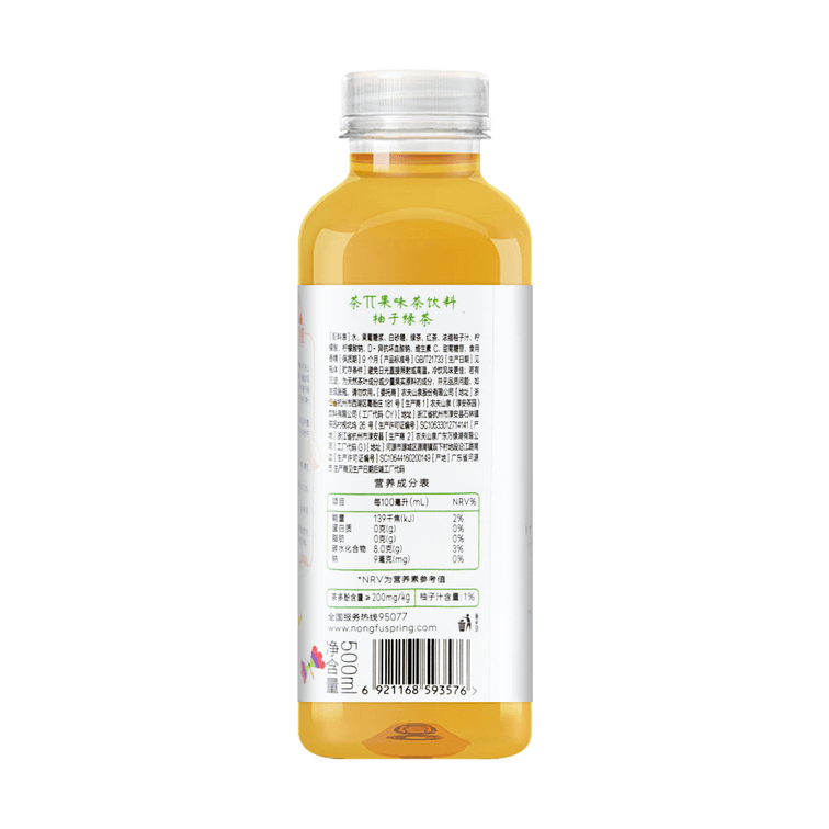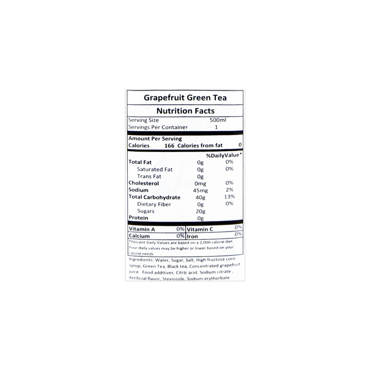 | 原料成分 | 水,果葡糖浆,白砂糖,绿茶,红茶,浓缩柚子汁。 |