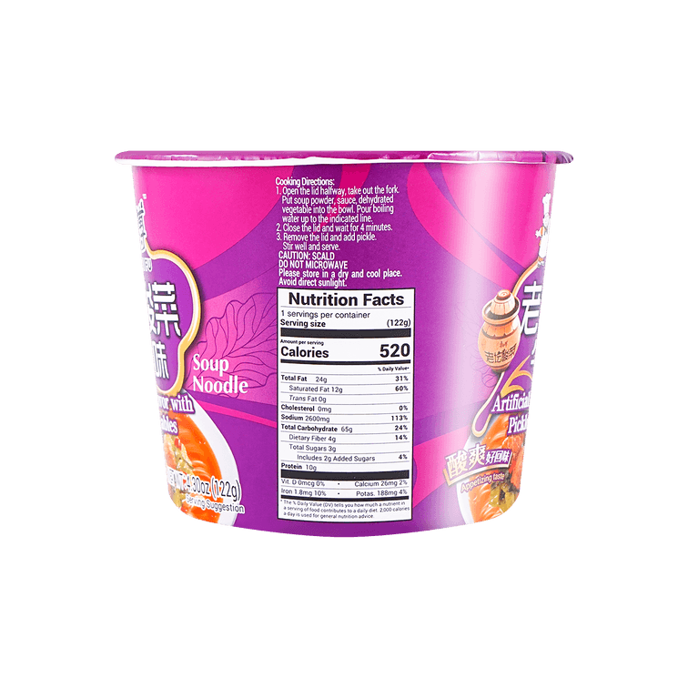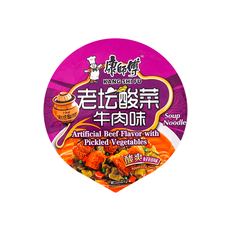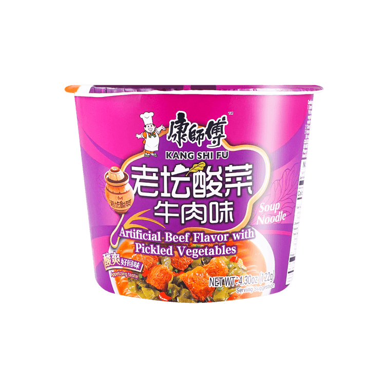 【超值五桶装】康师傅 方便面 老坛酸菜牛肉风味 桶面 122g*5