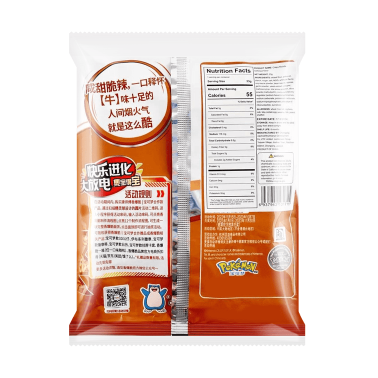 【超值装】康师傅 香爆脆干脆面 滋滋烤肉味 33g*6包【宝可梦卡比兽包装】