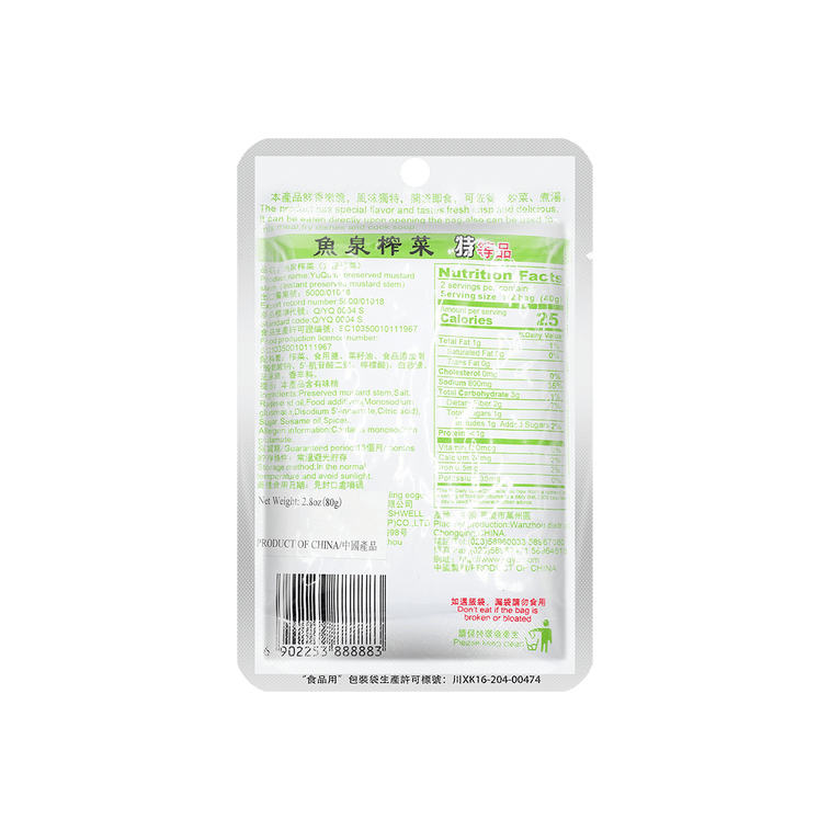 【超值五包】鱼泉 榨菜丝 咸菜丝 80g*5