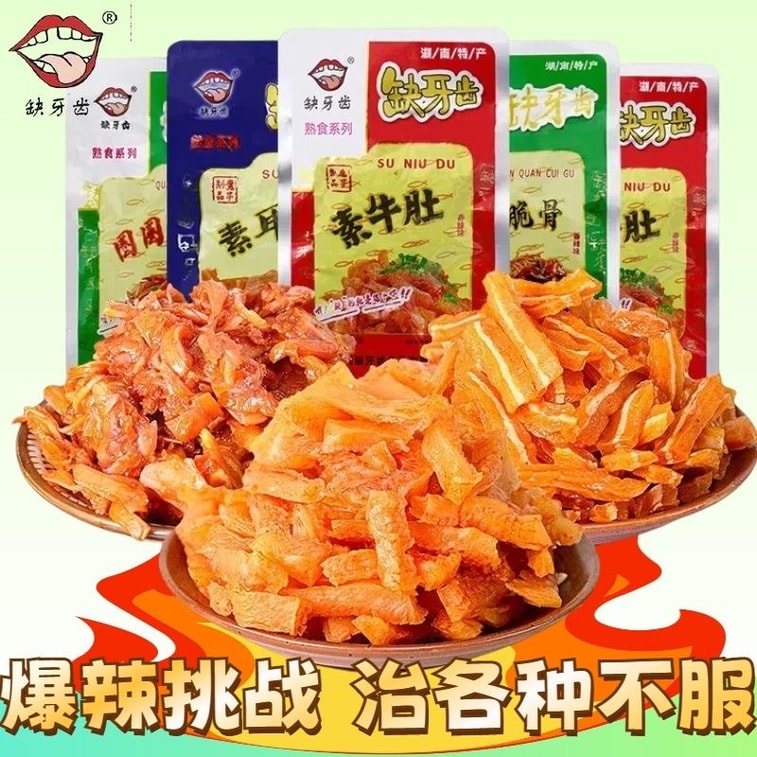 缺牙齿 素牛肚超辣香辣耳尖脆骨鱼仔湖南解馋小零食16g*10(4种口味混合)
