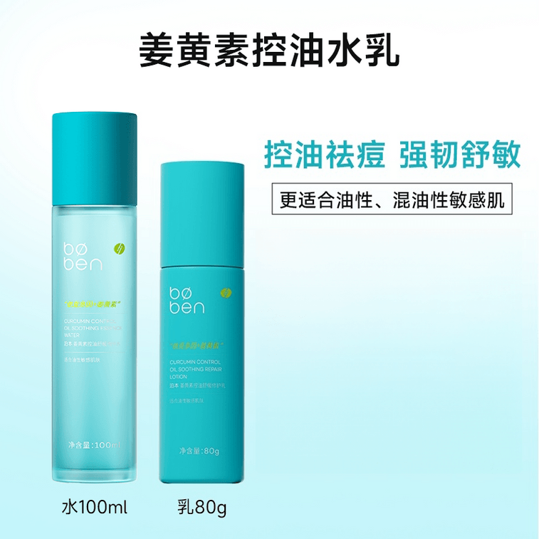 【中国直邮】 泊本 3.0版姜黄素水乳套装【油皮/油敏肌使用】 控油修护乳液 控油精华水100ml+控油精华乳80g | 亚米