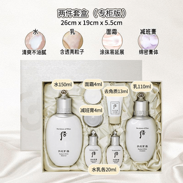 【香港直邮】 韩国 THE HISTORY OF WHOO后 拱辰享雪美白套盒两件套水乳面霜套装淡斑提亮清爽补水保湿