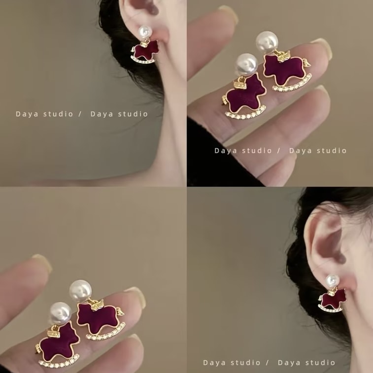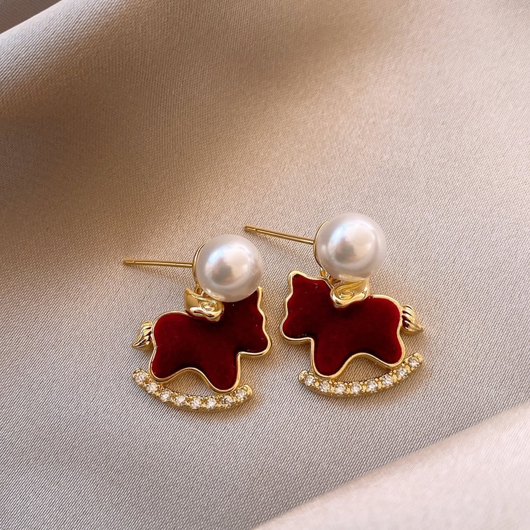 「中古Vintage」红色小马珍珠耳环 2026新款爆款高级感轻奢耳钉本命年 新年耳饰女