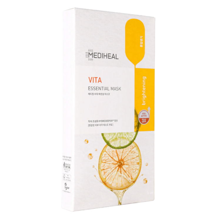 使用 Mediheal Essential Mask Vita,让疲惫暗沉的肌肤重焕活力. 这款韩式面膜蕴含强效维生素 C、E 和 B,可瞬间提亮肤色,均匀肤色,焕活肌肤纹理。只需 15 分钟,肌肤即可焕发光滑光泽,焕发新生。经皮肤科医生测试,配方洁净,不含对羟基苯甲酸酯、邻苯二甲酸酯和矿物油,可安全每日或每周使用. 这款环保纯素竹纤维面膜贴合舒适,同时能为肌肤深层补充水分和营养. 无论何时,只要肌肤感到疲倦或暗沉,都能焕发光彩.