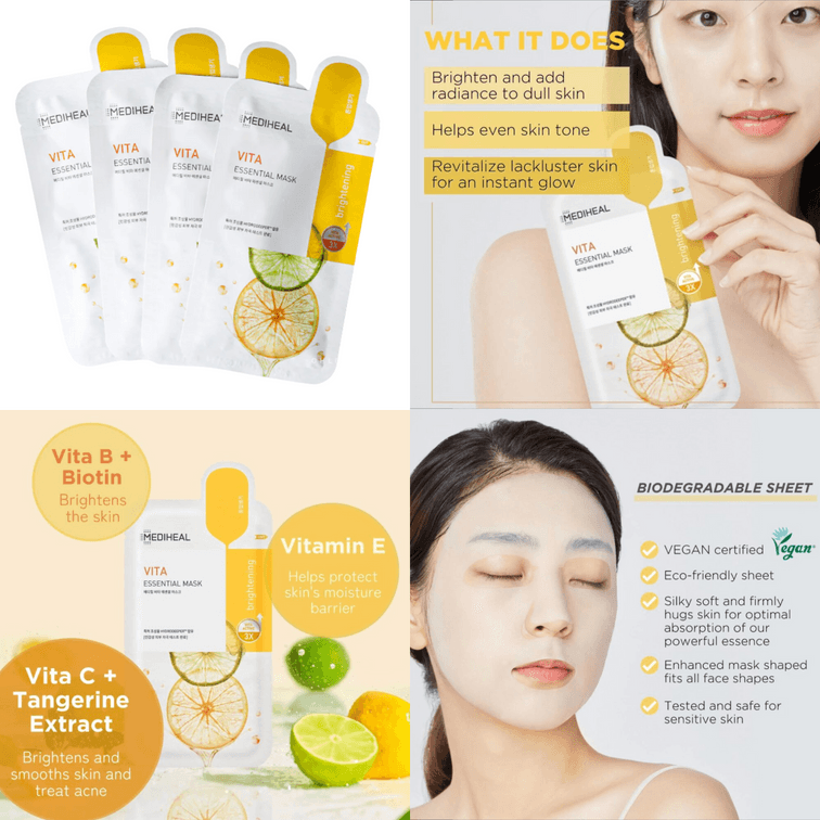 韩国 MEDIHEAL美迪惠尔 Vita Sheet Mask 4ct - 3倍Vita Active提亮肤色