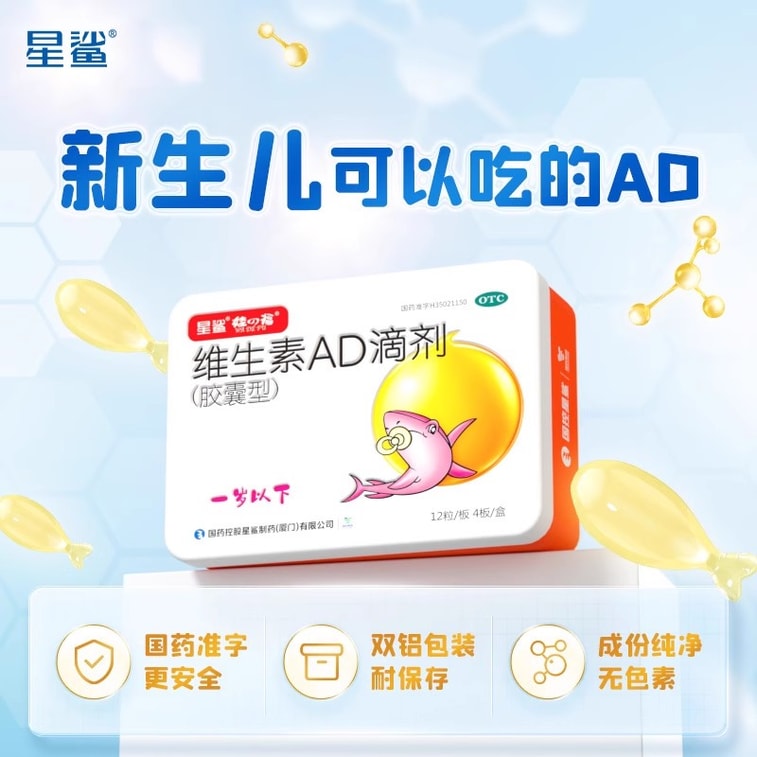 【中国直邮】 星鲨 维生素AD滴剂1岁下宝宝VD48粒/盒
