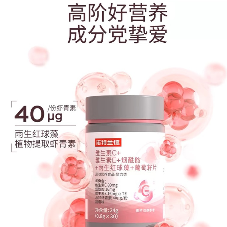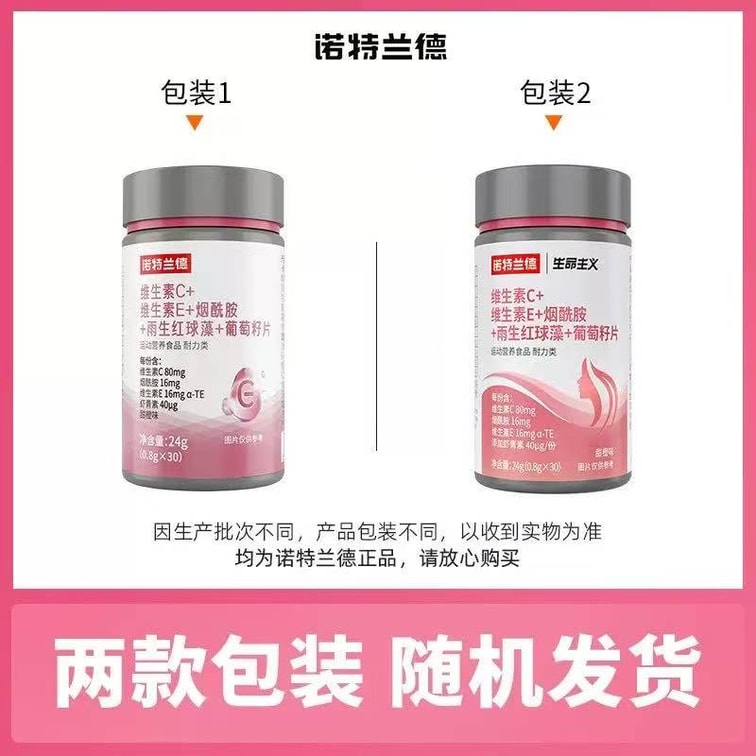 诺特兰德 维生素C+维生素E+烟酰胺+雨生红球藻+葡萄籽片 压片果糖 养生综合营养素 添加虾青素 30粒 24g