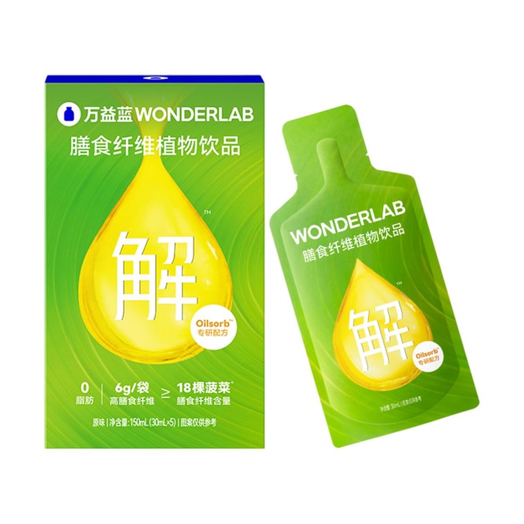 WONDERLAB万益蓝 膳食纤维植物饮品 30ml*5袋入 原味 随餐1袋 KO油腻 白芸豆吸油促肠胃蠕动排 大餐必备