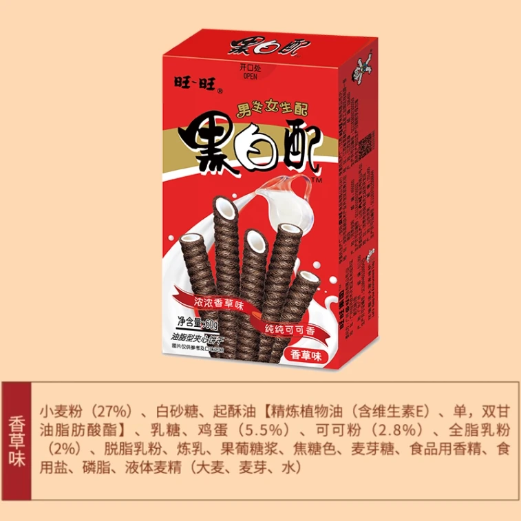 台湾 旺旺 黑白配巧克力夹心蛋卷饼干棒香草味56g*1盒
