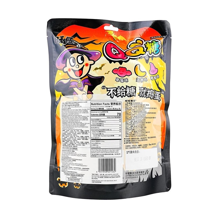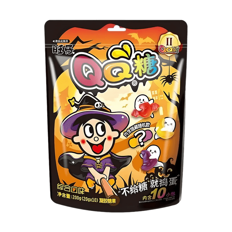 旺仔 万圣节限定 QQ糖 草莓菠萝葡萄味 10包入 200g【趣味造型软糖】【内含隐藏随机款】