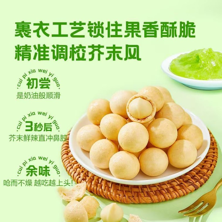 【中国直邮】 良品铺子 芥末味夏威夷果仁独立小包装无壳网红脆皮坚200g*1袋