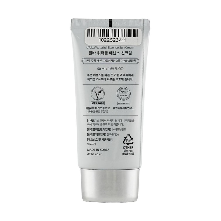 韩国D'ALBA黛尔珀 水漾同款精华防晒霜 纯素 SPF50+·PA++++ 50ml 补水保湿 轻薄不粘腻 干皮挚爱 美白细纹改善