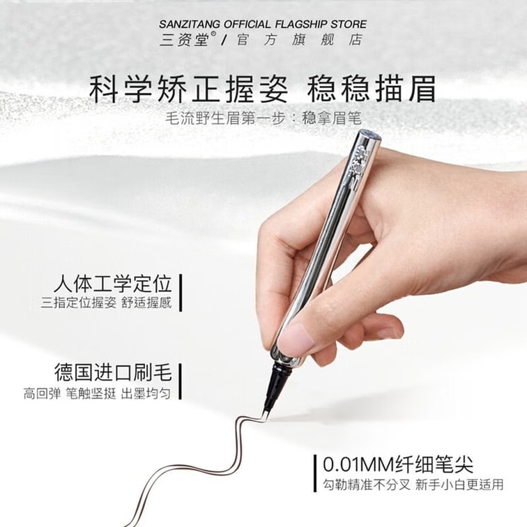 【中国直邮】 三资堂 二叉水眉笔 03#柔灰黑色 持久防水不脱色 根根分明野生眉 品牌正品官方旗舰 1 支装