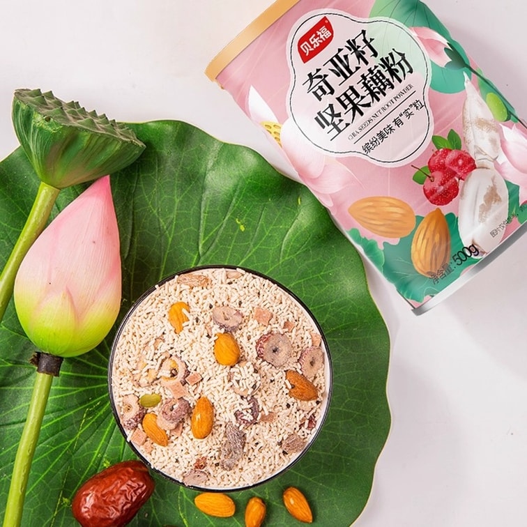 【中国直邮】 藕粉【坚果羹奇亚籽】500g 罐装莲藕粉 巴旦木 早餐代餐食品