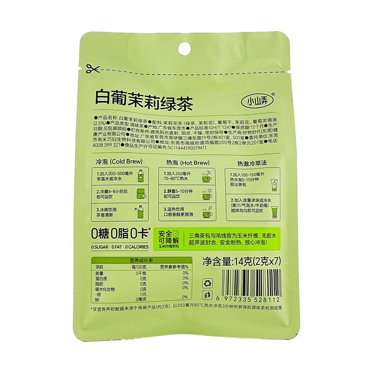 小山弄 白葡萄茉莉绿茶包 7包入 14g【配料干净无添加剂】【冷热双泡】