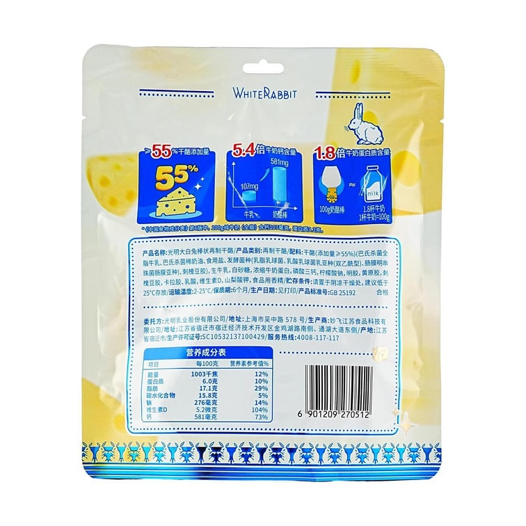 光明 大白兔奶糖风味牛奶乳酪 奶酪棒 5支 90g【干酪含量≥55%】【奶香浓郁 童年奶酪棒!!】