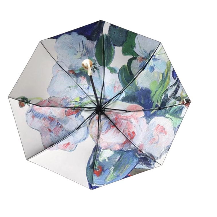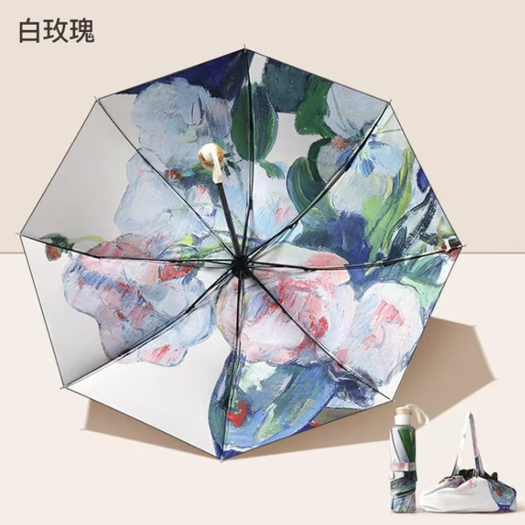 海蓝星 晴雨两用 SPF 50 三折双层太阳伞 五折轻巧 黑漆钢骨 优质印花 防晒防紫外线 白玫瑰 一件 | 亚米
